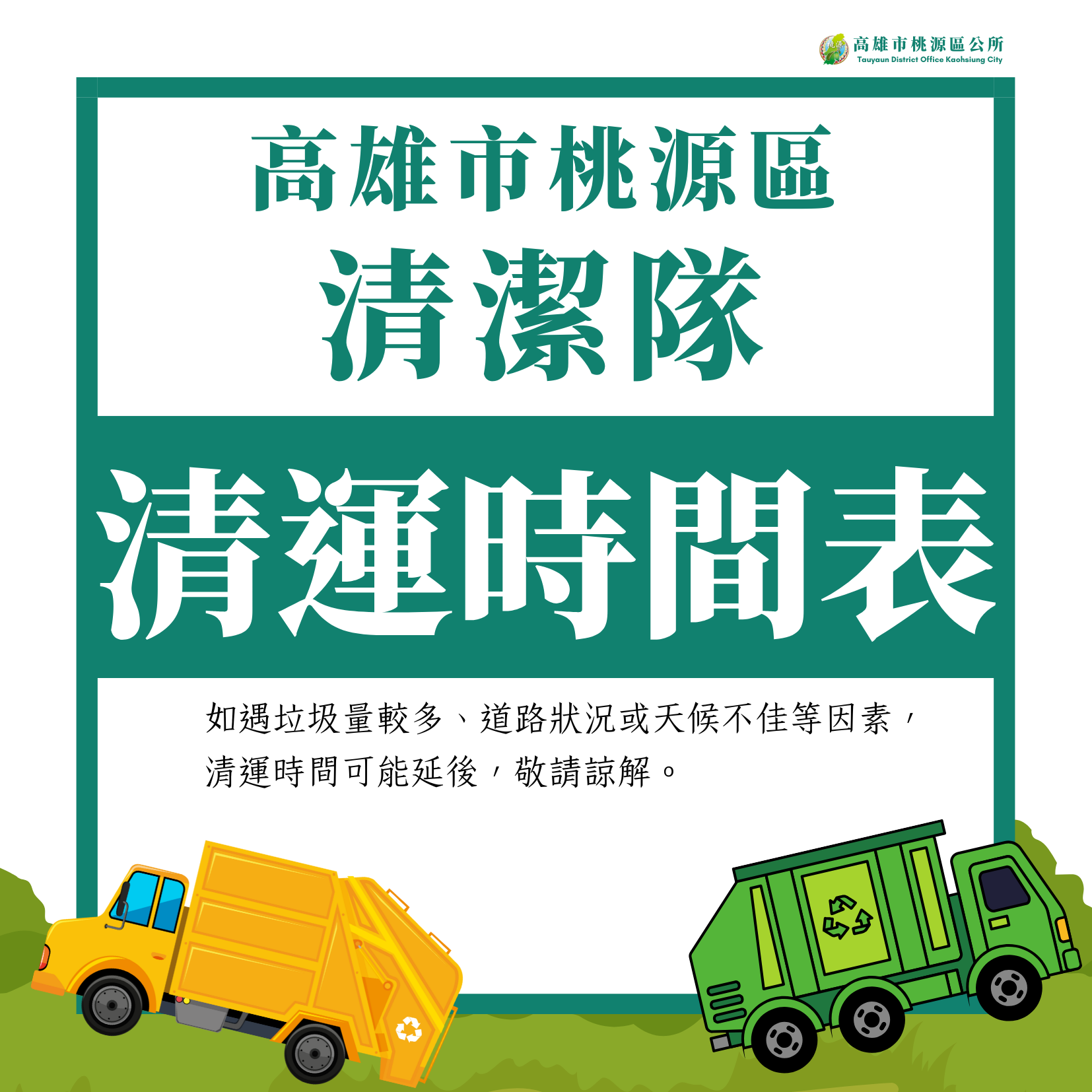 如遇垃圾量較多、道路狀況或天候不佳等因素,清運時間可能延後,敬請諒解。